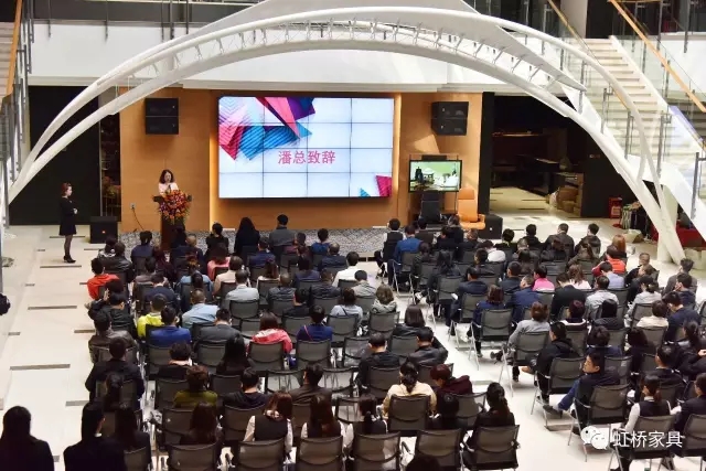佛山市虹橋家具有限公司營(yíng)銷執(zhí)行總裁潘紅梅女士首先致辭,潘總從公司生產(chǎn)、營(yíng)運(yùn)、社會(huì)消費(fèi)三方面進(jìn)行了點(diǎn)評(píng)和總結(jié)。致辭中,潘總首先感謝虹橋伙伴們能夠甘苦與共,不離不棄,再談了在2016年我們所作的準(zhǔn)備和努力,最后號(hào)召伙伴們能夠手挽手,肩并肩共同走過這一路的姹紫嫣紅,走向更大的成功!